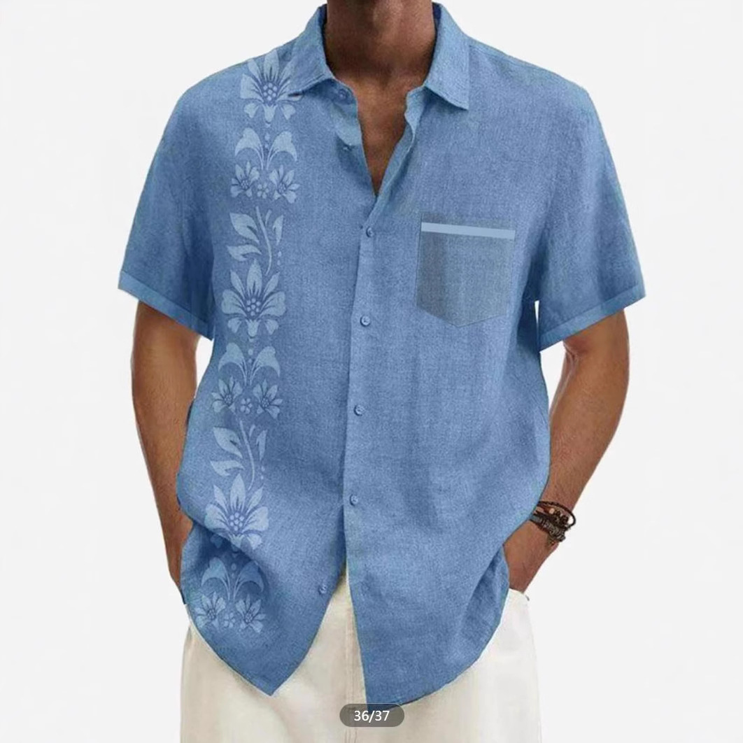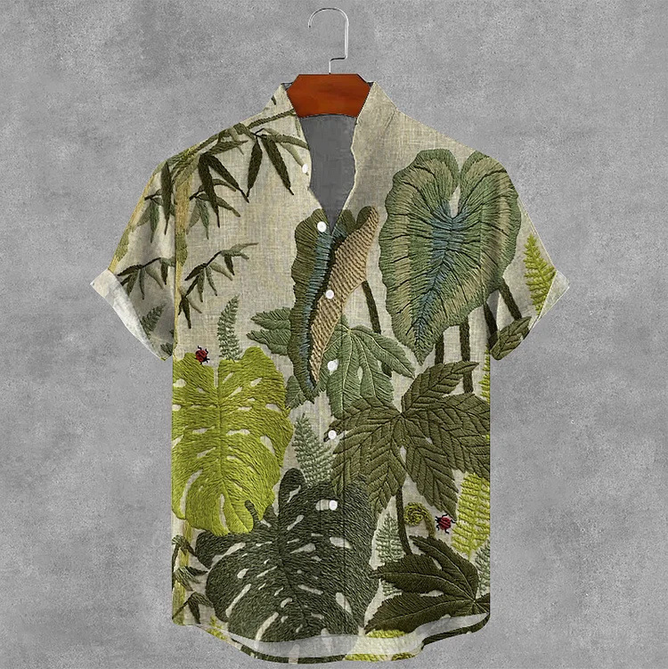 クロスボーダーファッションカジュアルメンズデジタルプリント半袖シャツハワイアンレトロ竹リネンボタンスタンドカラーカーディガン