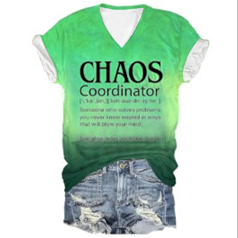 QH速売通クロスボーダーファッションカジュアルレディースカジュアルvネック半袖tシャツアルファベット3Dデジタルプリント半袖