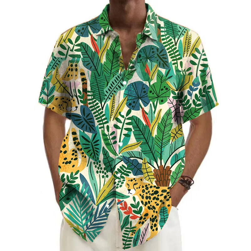 2023越境源メーカー夏の新型男性ボタンシャツファッションハワイビーチ植物花シャツ