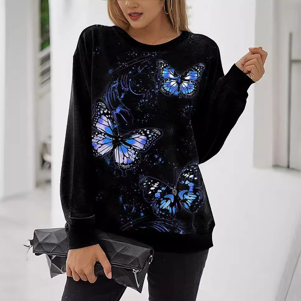 1688卸売りクロスボーダー女装欧米新型3d蝶デジタルプリント長袖丸首衛衣女代件