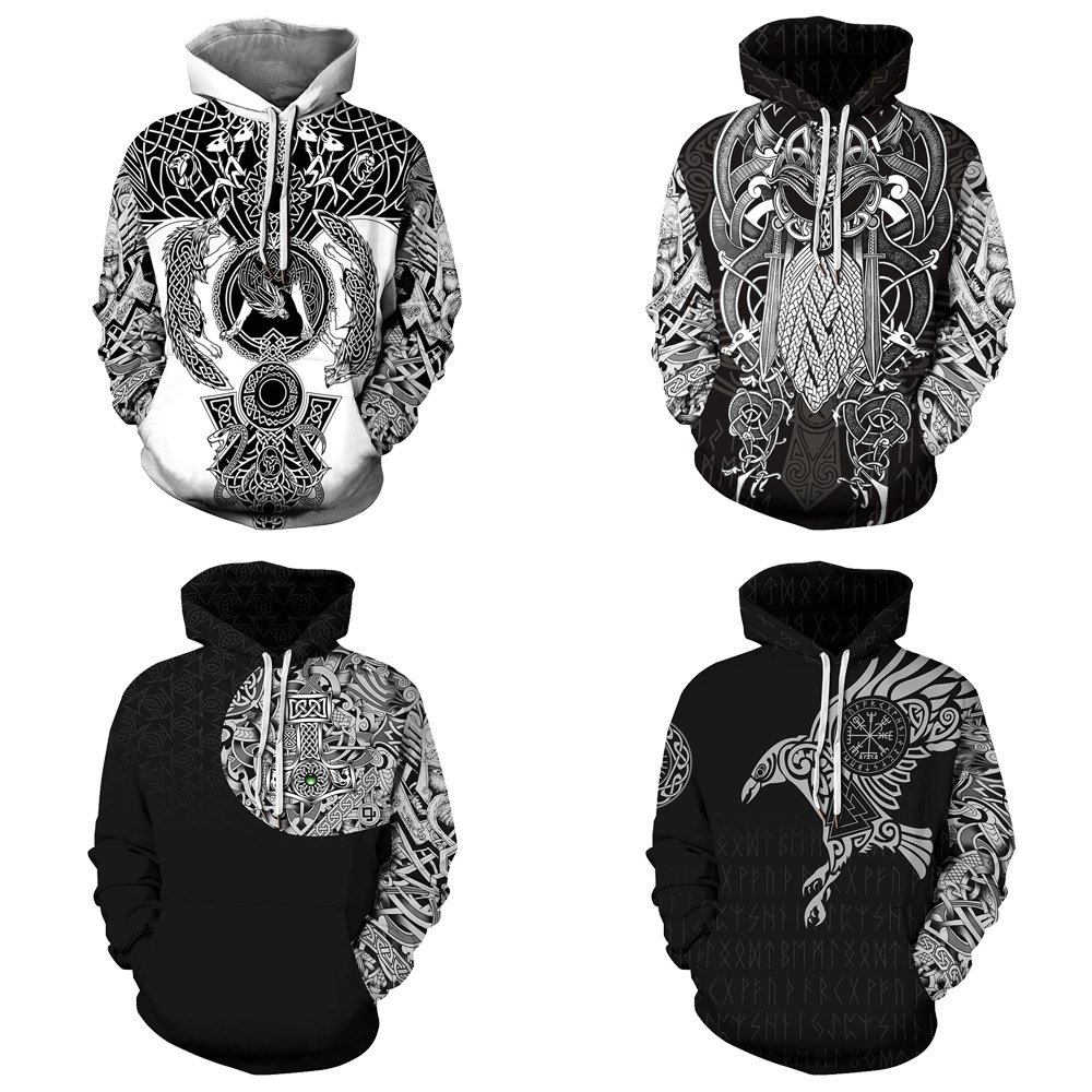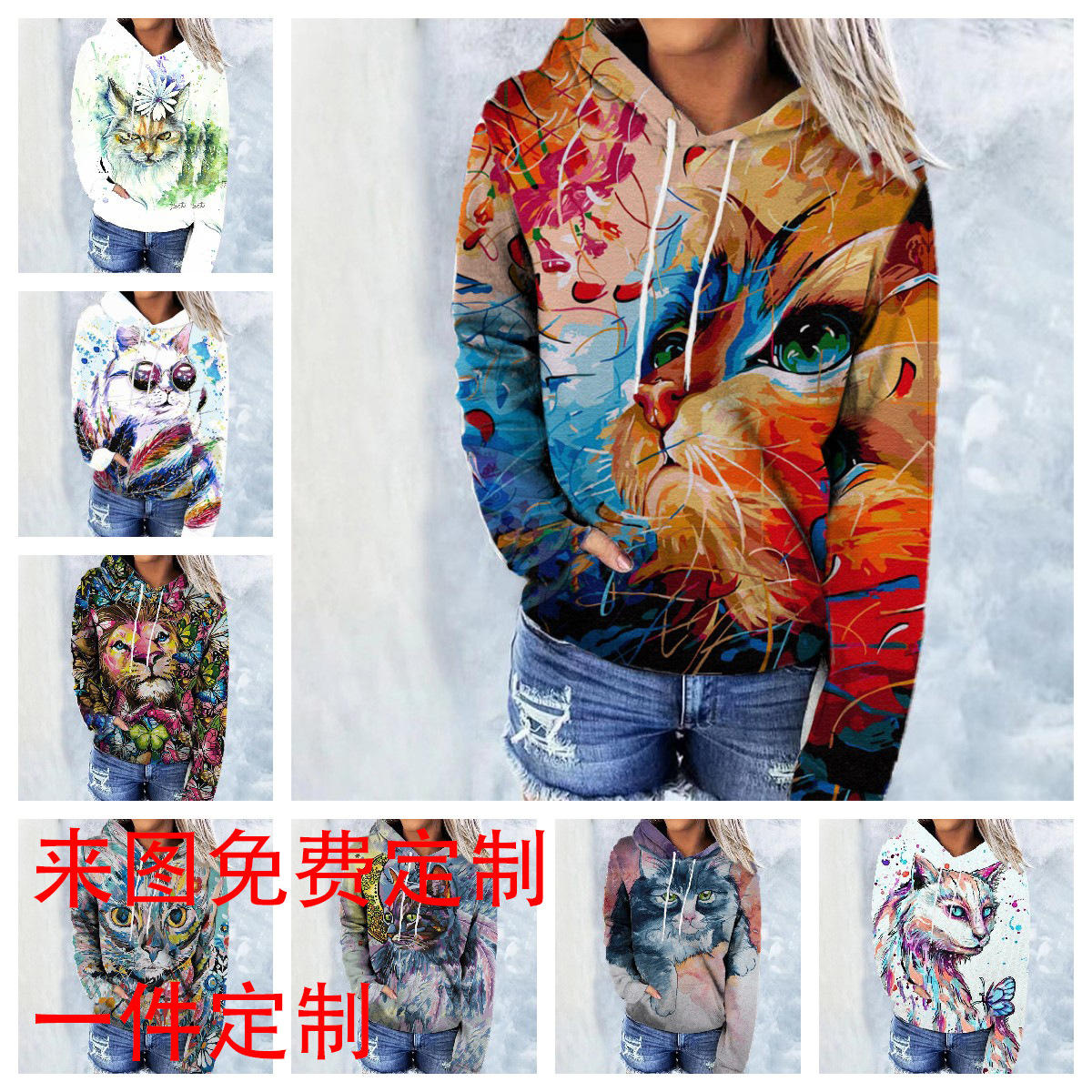 2023国境を越えた新型欧米のレトロなトーテム神話のデジタルプリントのカップルは帽子の衛衣のゆったりした衛衣を着ます。