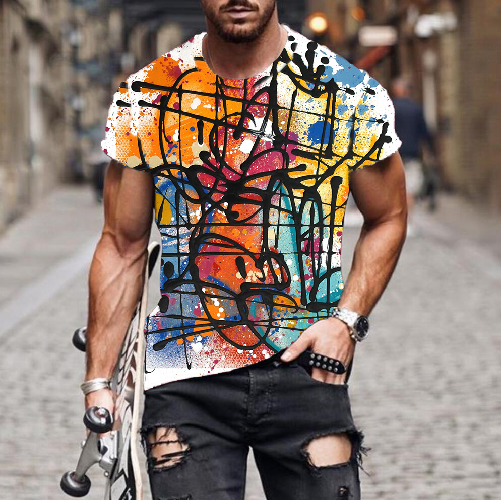 クロスボーダー欧米速売通男性街頭レジャーファッション抽象絵画プリントtシャツ3dプリント半袖男性tシャツ