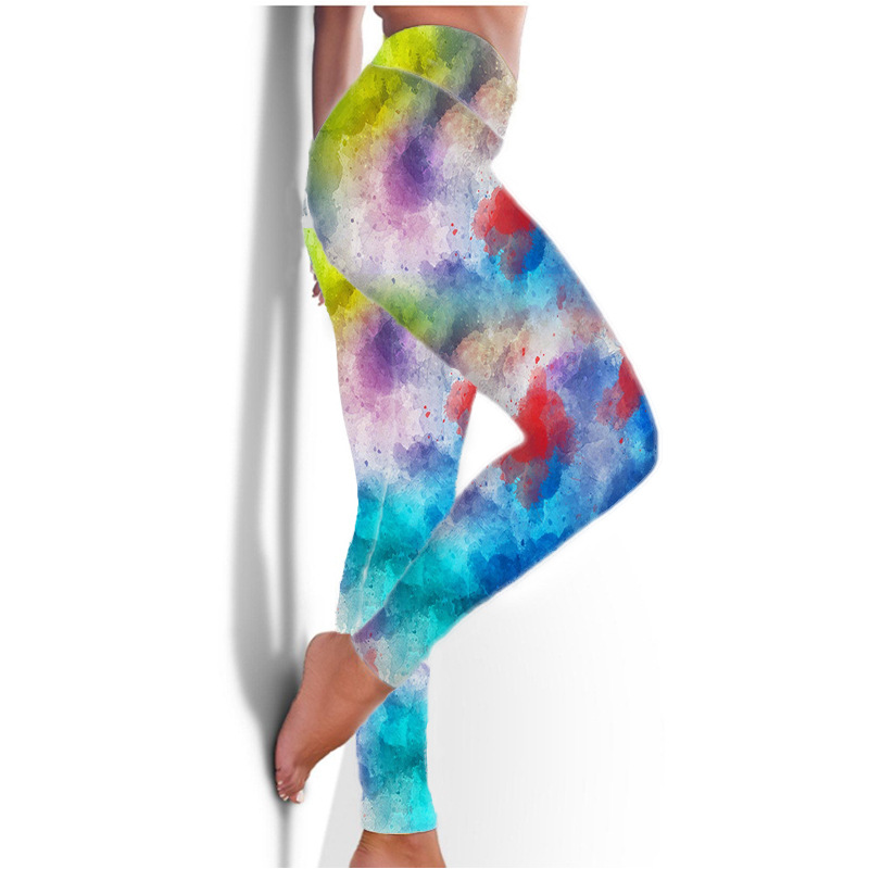 1688クロスボーダー欧米スポーツスキニーヨガパンツ染めファッション落書きレギンス高腰ヨガパンツ工場直売