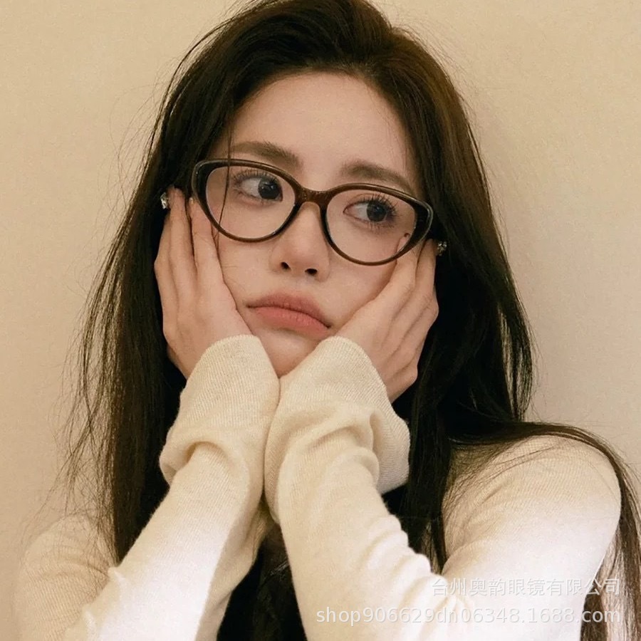 新型韓国風大枠すっぴん防ブルーライト平光メガネins高級感冷茶色メガネフレーム男女同モデル