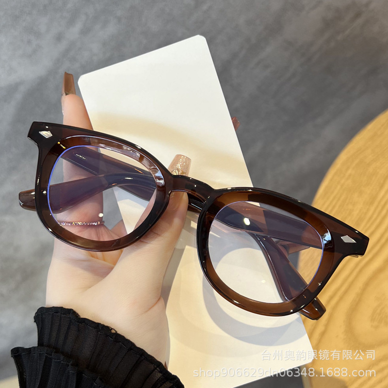 新型レトロ韓国版ins丸枠ブルーレイ防止平光鏡シンプル米釘高級感すっぴんメガネ枠卸売り