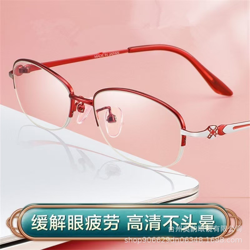 新しいファッションの半枠の青い光の老眼鏡の女性の優雅さは若い金属の光学の老眼鏡の高清が読みます。