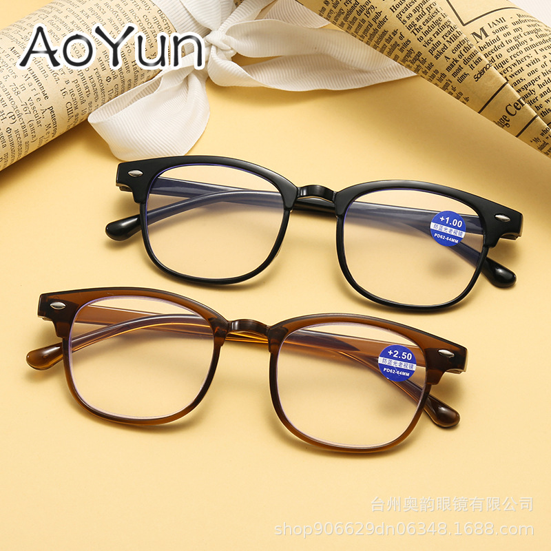 新しいファッショナブルなスクエアフレーム高精細抗青色光老眼鏡超軽量レトロ2色中高年向け高級老眼鏡