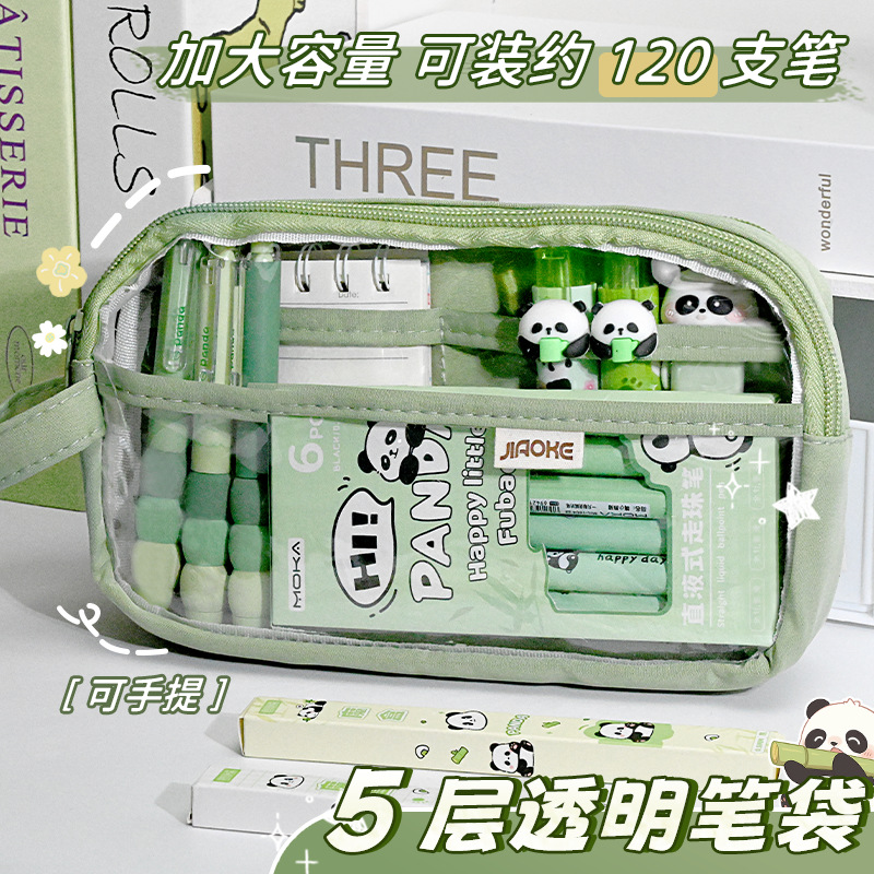 大容量のペンの袋の多層の文房具の箱の女性のシンプルな風の鉛筆の箱の新型の緑色のパンダの文房具の袋の学習用品