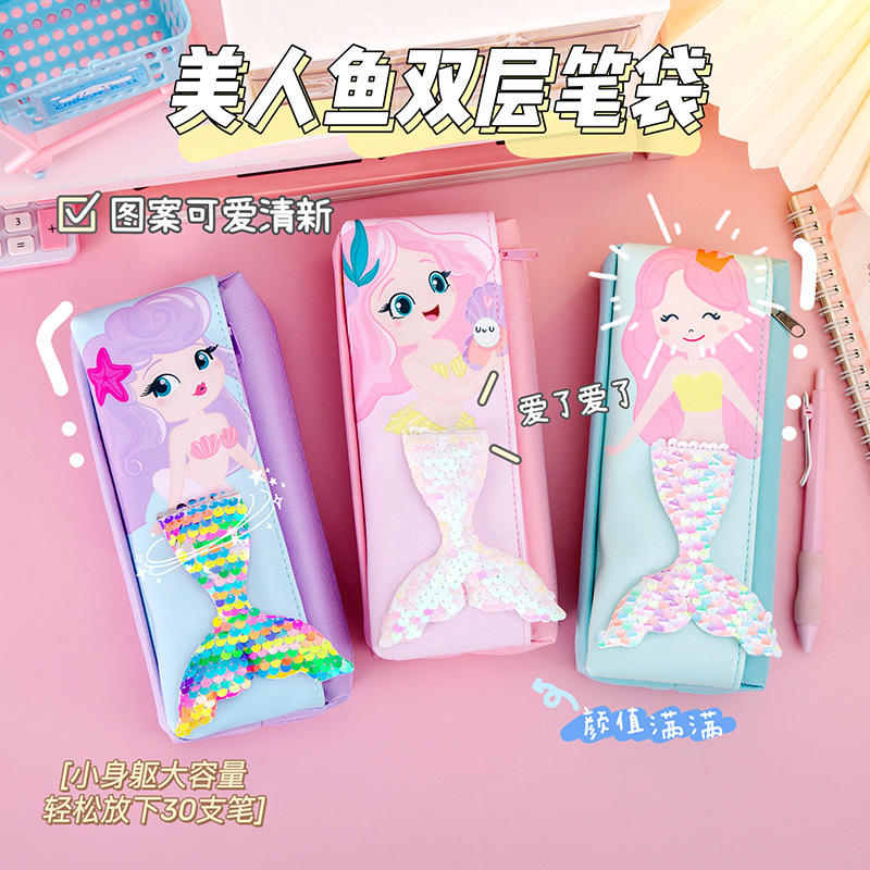 マーメイド二層子供ペンバッグクリエイティブ小学生鉛筆ケース防水大容量鉛筆袋文房具袋卸売り