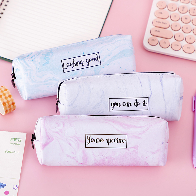 学生高颜値ペンバッグ大容量文房具袋クリエイティブ大理石の質感印刷ロゴ鉛筆ケース卸売り