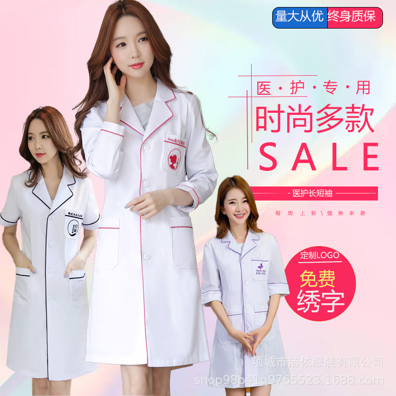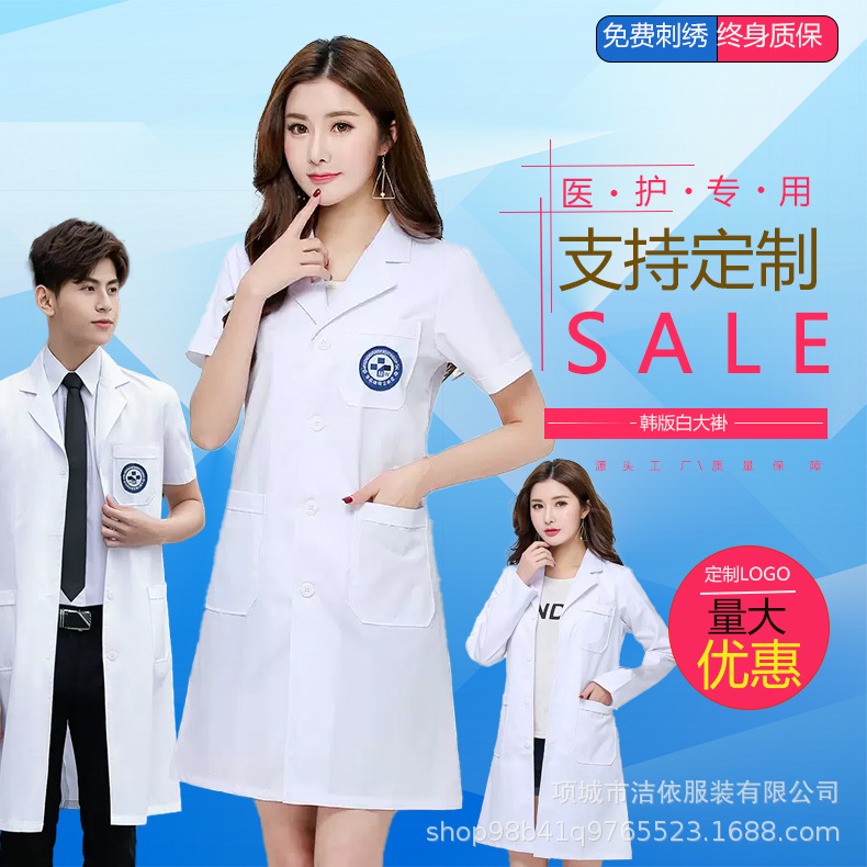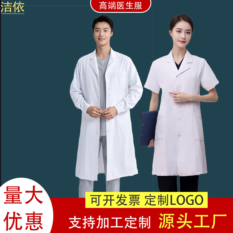 医師服長袖男性作業服夏薄手半袖半袖女性実験服看護師美容院白衣韓国版