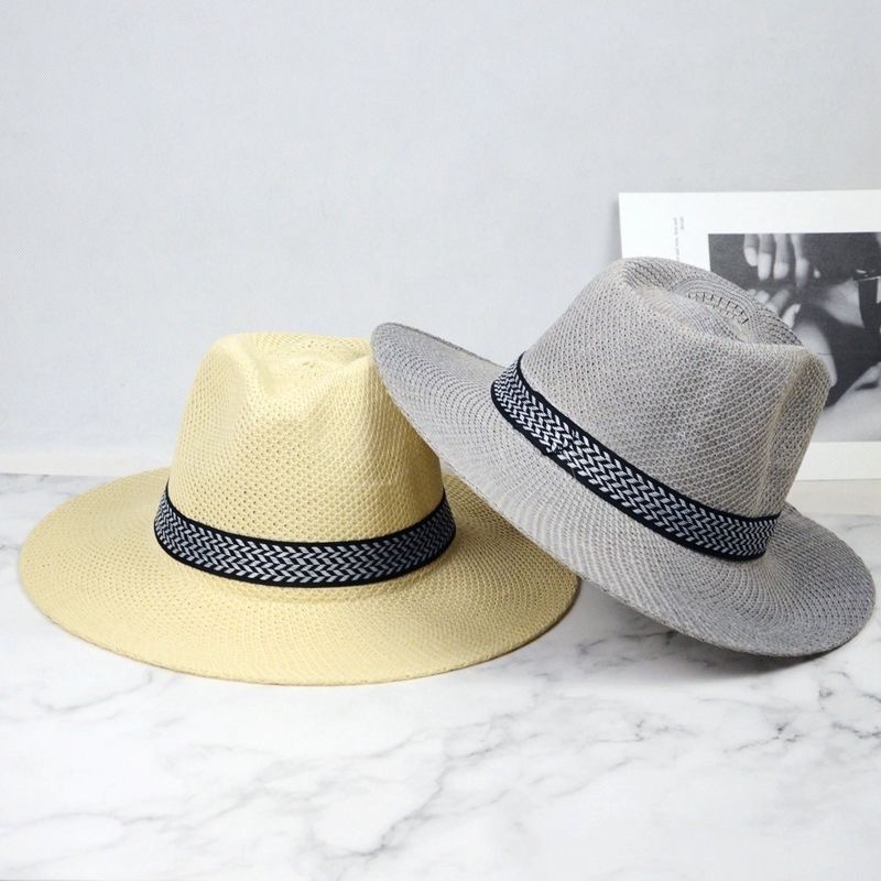 春夏麦わら帽子メンズサンシェード夏の海辺の休暇ビーチインターネットセレブ日焼け止め手織りつば広フレンチハット