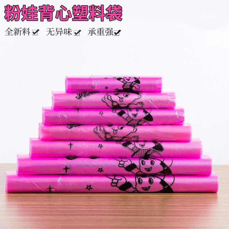 ポータブルフルーツバッグスーパーマーケットのショッピングバッグゴミ袋ピンクベストビニール袋使い捨てテイクアウトバッグ