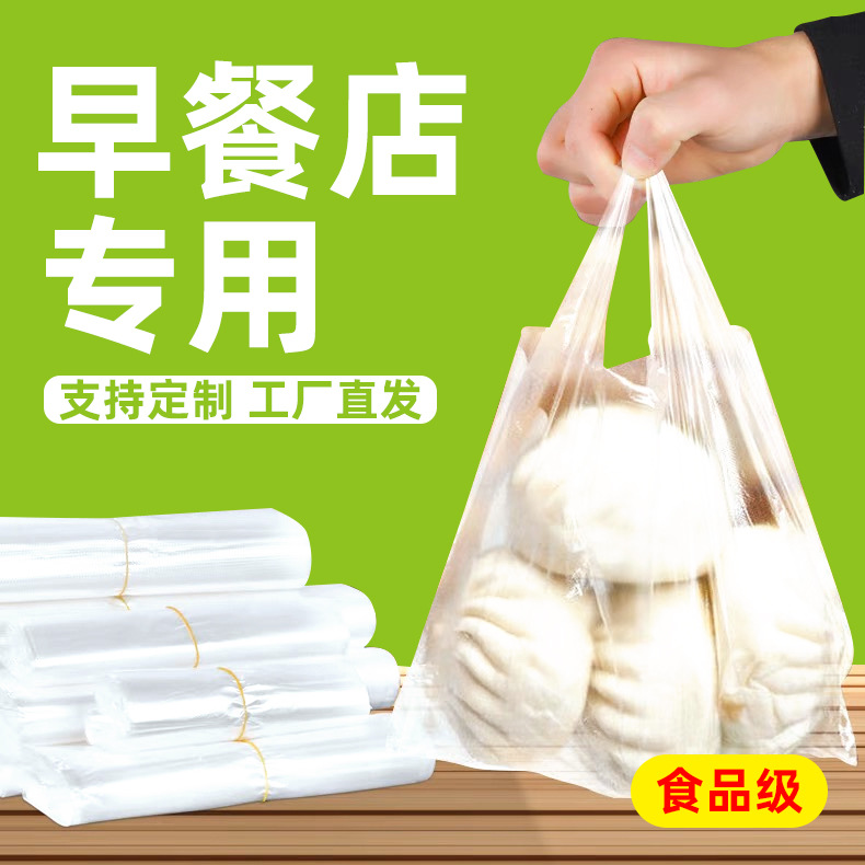 白色食品級透明袋ビニール袋朝食店肉まん手提げ包装袋便利袋出前食品袋