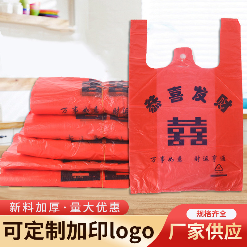 野菜果物食品包装袋スーパーレジ袋手提げベスト便利袋赤おめでとう金持ちビニール袋