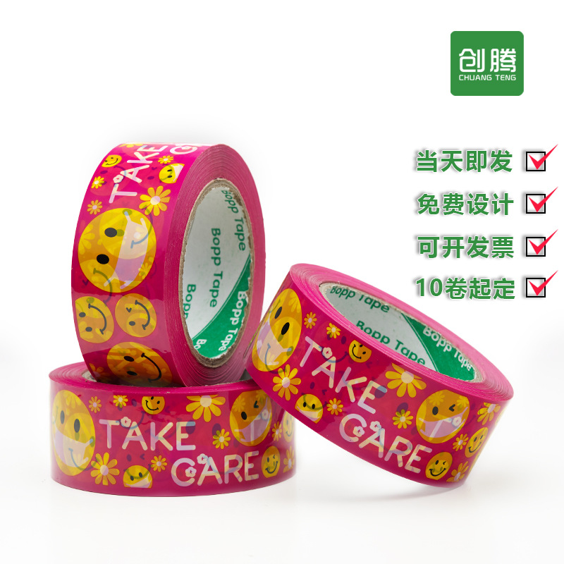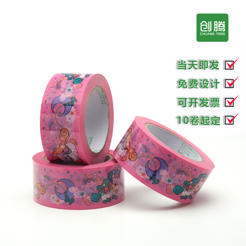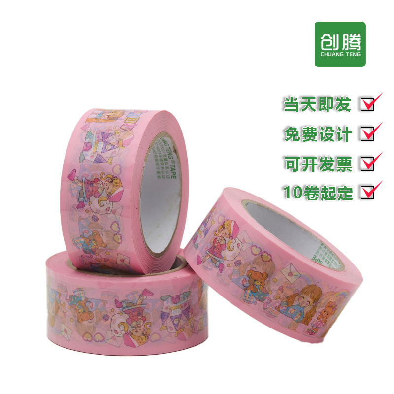 ピンクの封箱テープ漫画大巻テープネット赤電気商警告語封口個性テープ全箱卸売り
