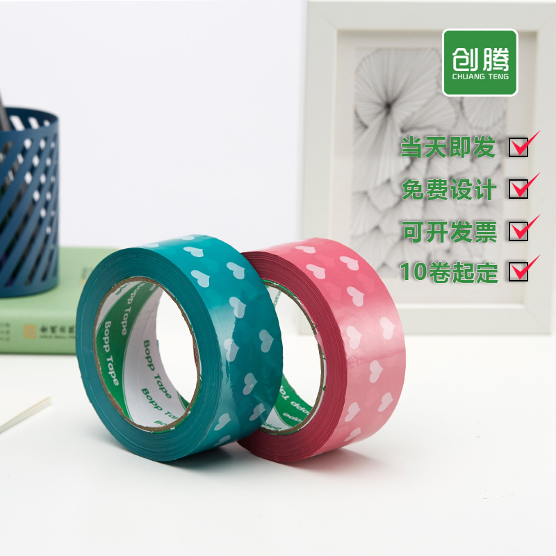 青い封箱テープ桃心封口テープピンクハート形かわいい模様宅配便梱包テープ