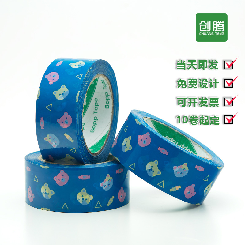 警告文封箱テープ漫画キャンディベアー模様封口テープ青いかわいい梱包テープ