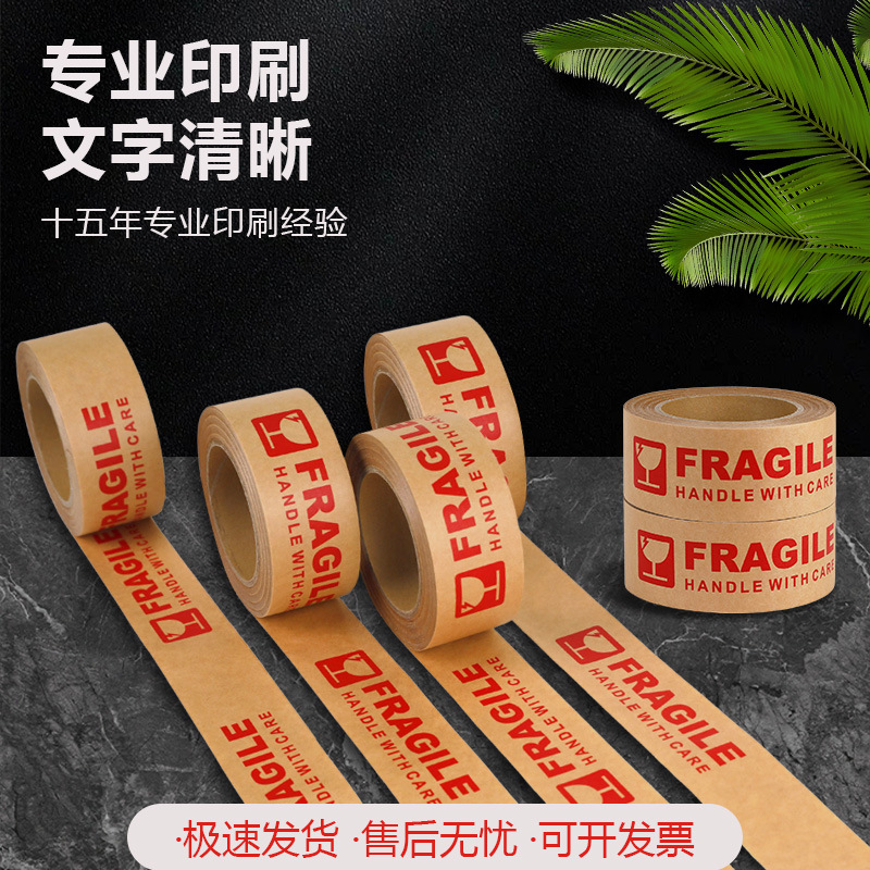 現物メーカー高粘クラフト紙包装テープ無水クラフト紙帯FRAGILE壊れやすいロゴテープ