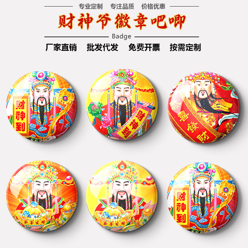 メーカー卸売り創意財神バッジ消耗品ブリキアニメの胸章服装装飾はロゴを追加することができます。