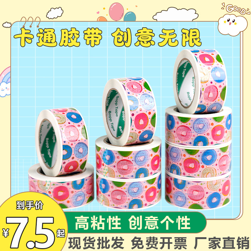 かわいいドーナツテープ大巻き卸売り宅配便包装シールテープメーカー宅配便物流包装シールテープ