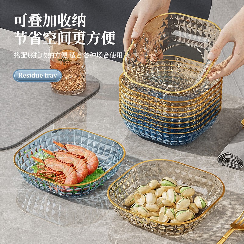 軽豪華透明吐骨皿金辺家庭用食品級食卓ごみ皿高級新型厚手プラスチック皿