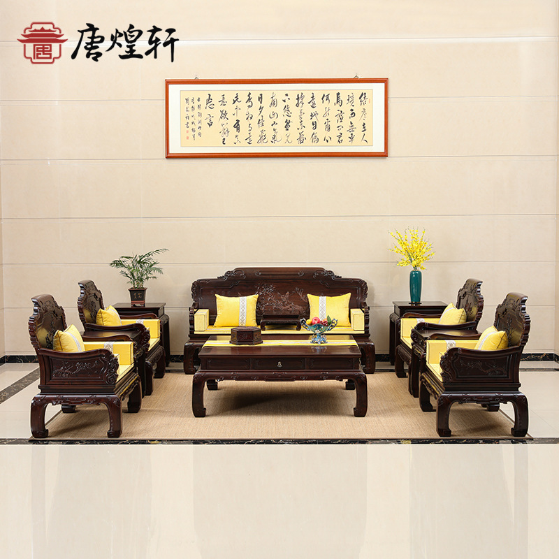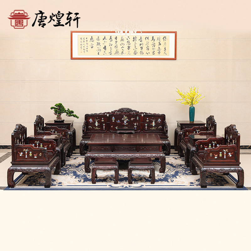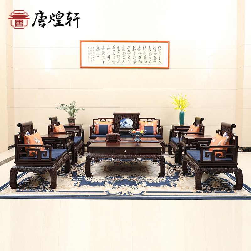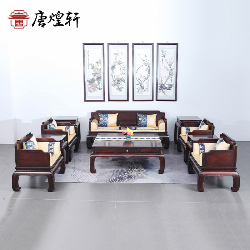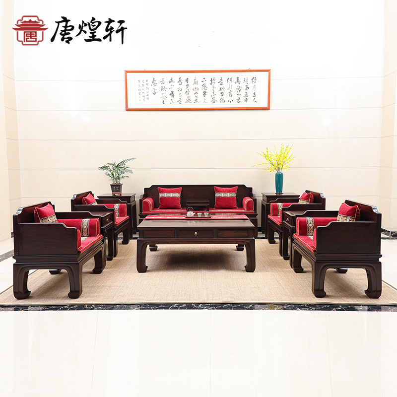 ラオス大紅酸枝家具紅木ソファー実木客間椅子セット新中国式交指黄檀セット