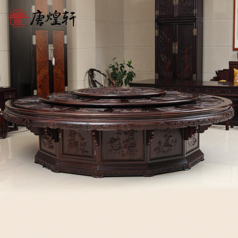 ラオス大紅酸枝家具新中国式実木回転盤円卓交指黄檀テーブル家庭用赤木テーブル