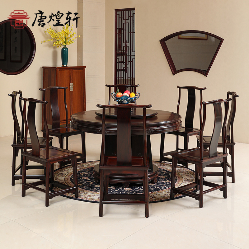 大紅酸枝交指黄檀158円食卓と椅子の組み合わせ中国式実木円卓食卓紅木家具