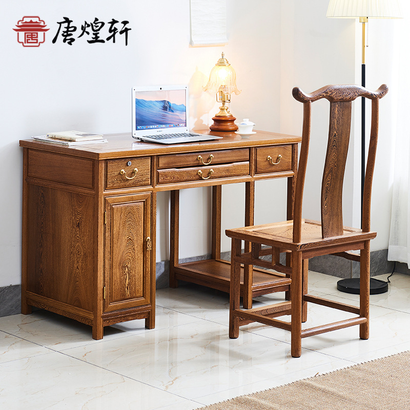 赤い木の家具の鶏の羽の木の家庭用デスクトップのコンピュータの机の組み合わせの実木の机の中国式の事務机の原木の事務机