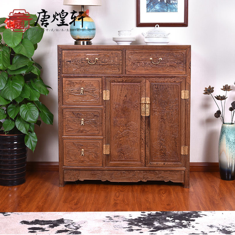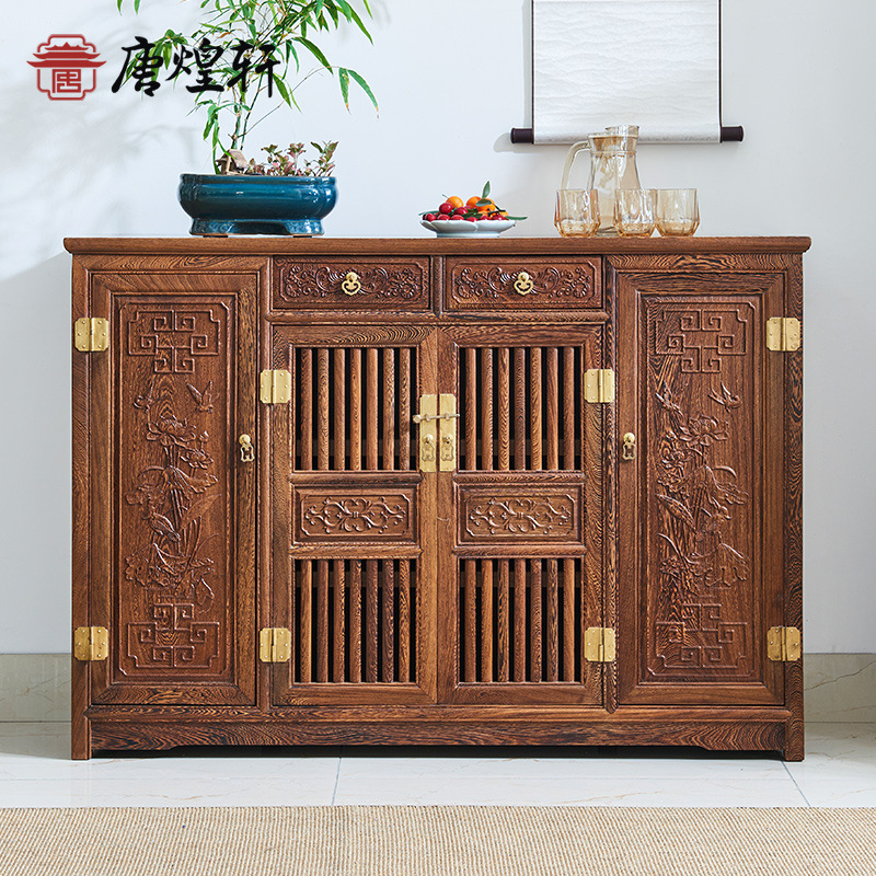 赤い木の家具の手羽の木の食事の辺のキャビネットのホールの台所のロッカーの新しい中国式の現代の実木のお茶の辺のキャビネット