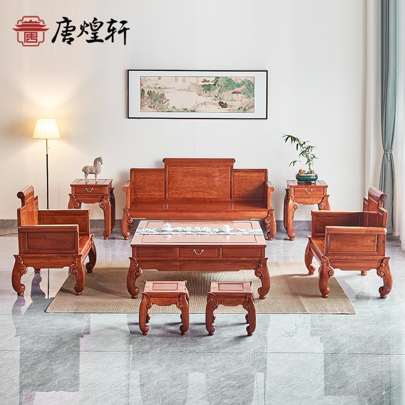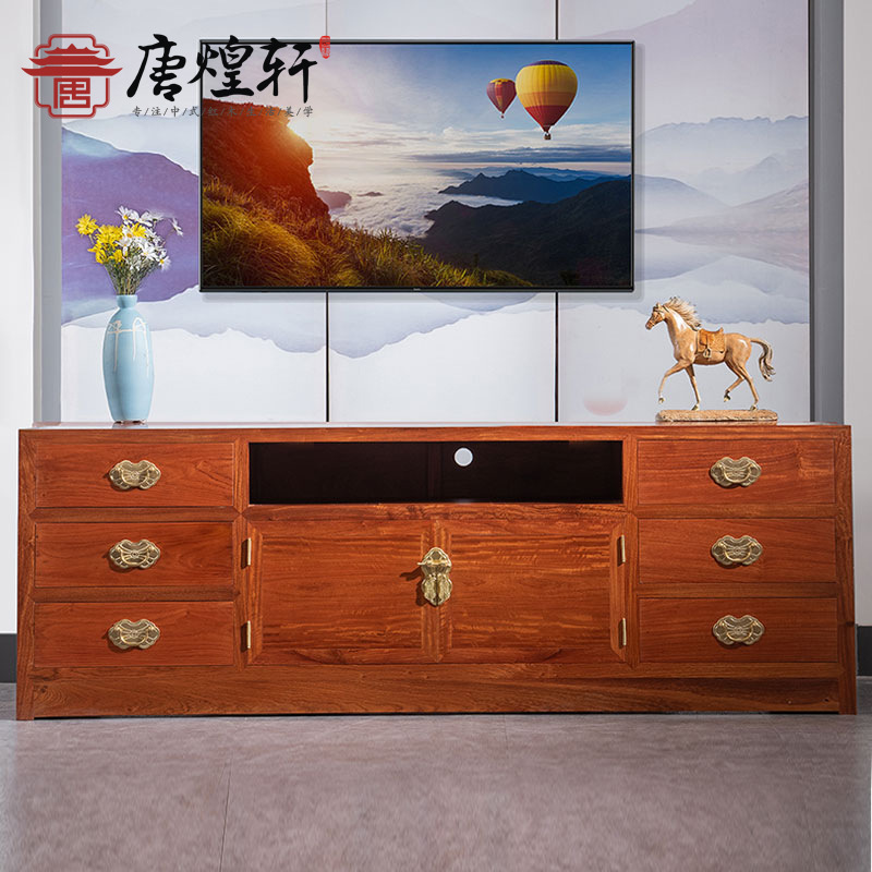 ミャンマー花梨客間寝室新中国式テレビキャビネット国標紅木家具実木組合せ大果紫檀地キャビネット