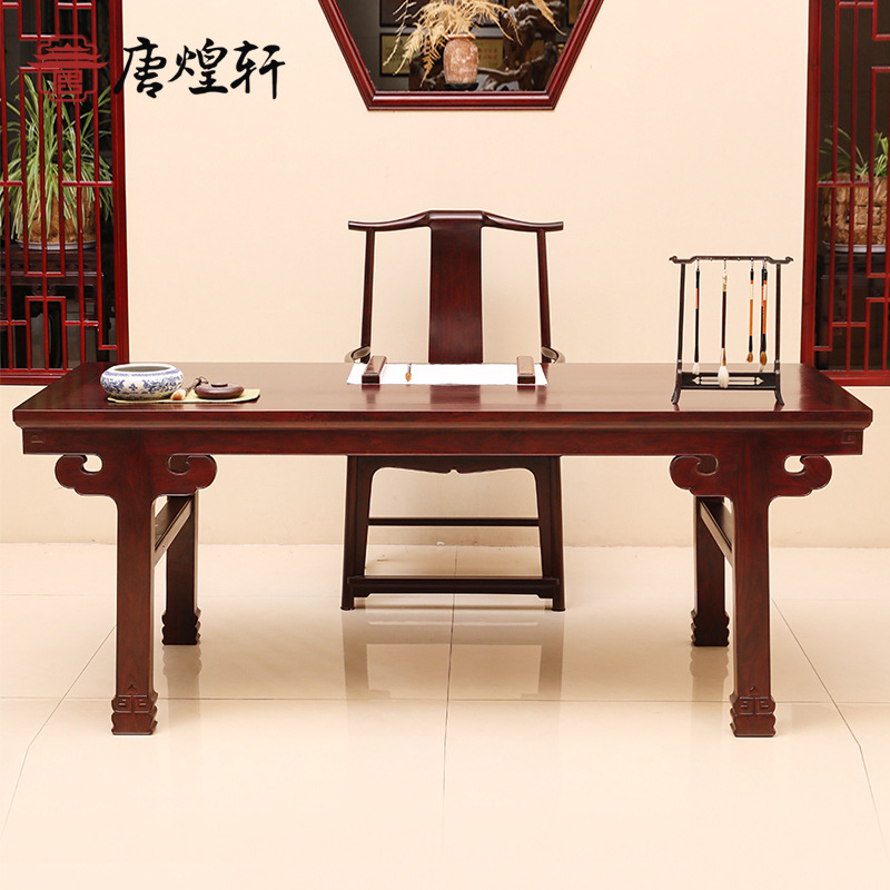 浮き彫りの松葉杖の雲の紋様のインドの小葉の紫檀の大きい画卓の文人の家具は古い机の中国式の事務机の古典をまねます。