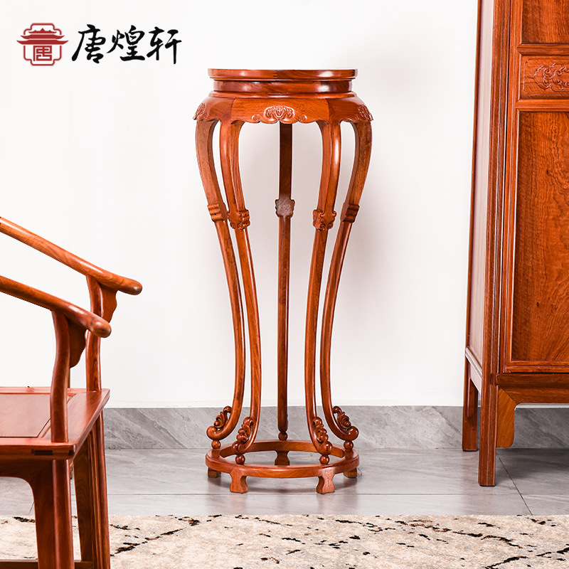 明式の家具のミャンマーの花梨の五足の丸い香の何かの赤い木の花の棚の花の何かの棚の床に置く式の多肉の植木鉢の棚