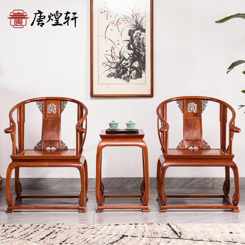 仙游紅木家具ミャンマー花梨皇冠椅子三点セット中国式全実木丸椅子囲み椅子太師椅子