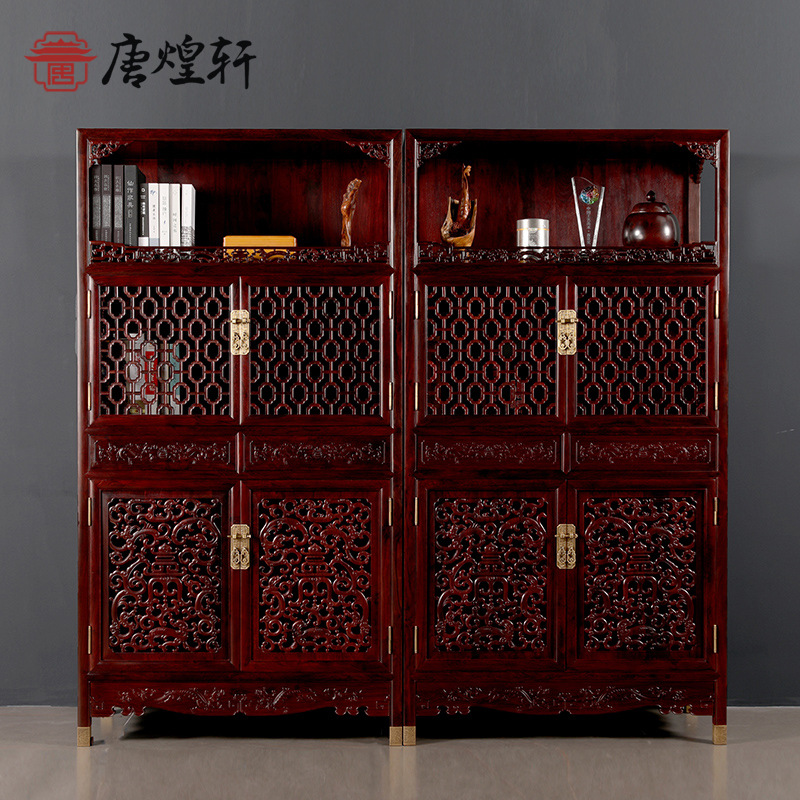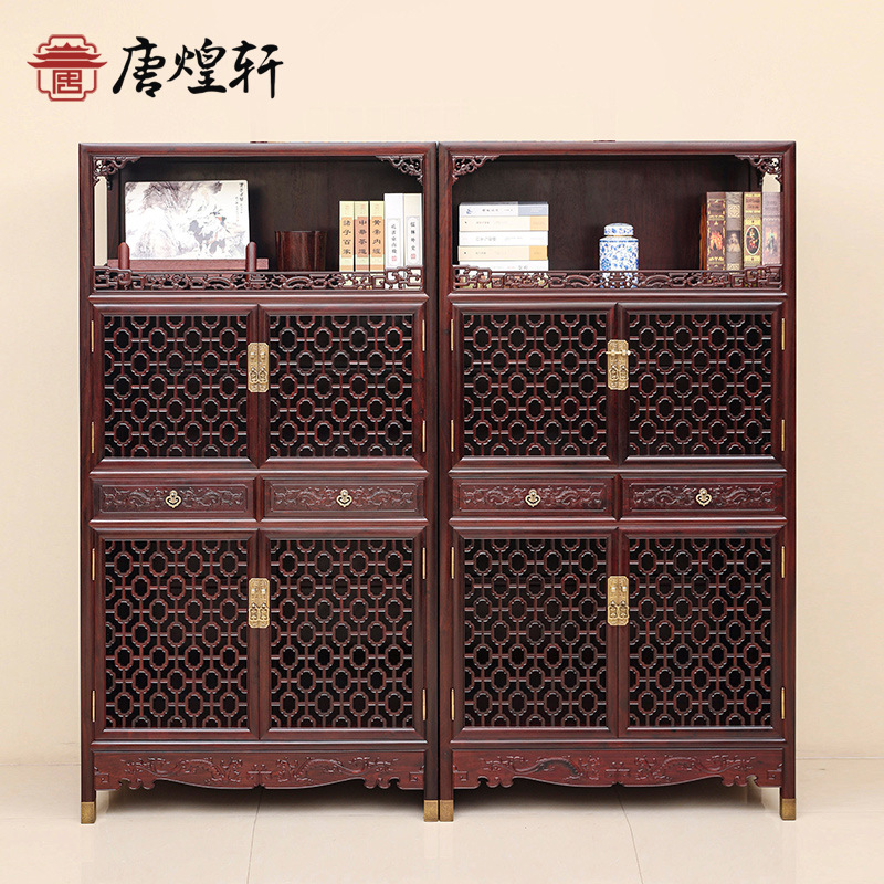 明清の家具の赤い木の食事の辺のタンスの客間は入り口のタンスのロッカーの紫光檀の家具の二連のタンスの首を長くします。