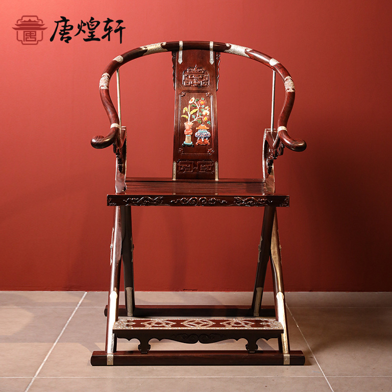 明式の交指の黄檀の頭は折り畳み椅子のラオスの大きい紅酸の枝の百宝を嵌め込んで博古の紋様を交えて椅子の全実木の輪の椅子に交際します。