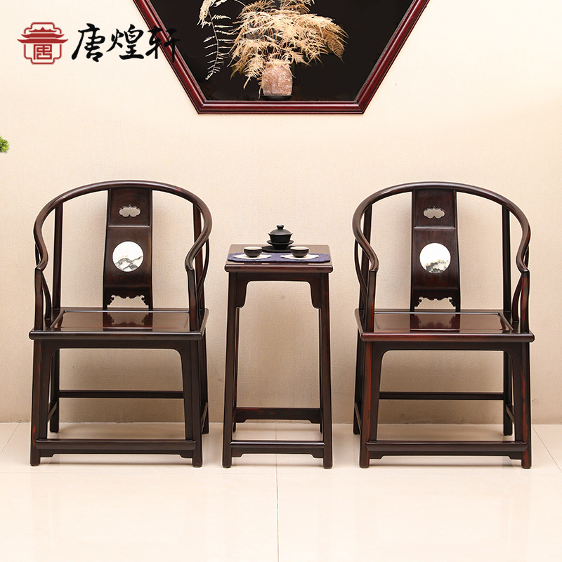 大紅酸枝雲石曲がり手すり椅子三点セット皇宮椅子官帽子椅子太師椅子赤木会客テーブル椅子