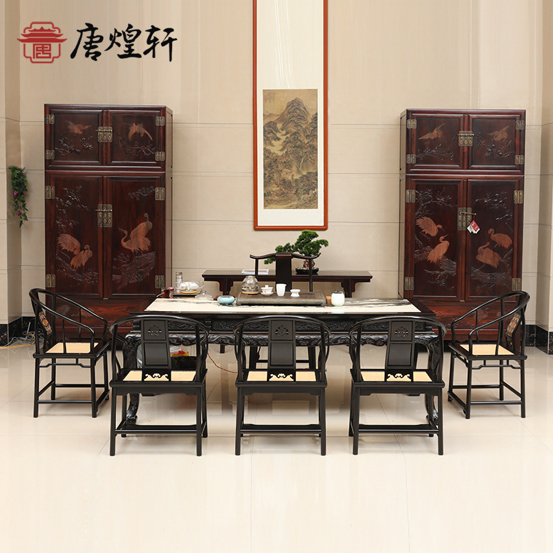 唐煌軒紫光檀新中国式円卓赤木円卓円形家庭用古典的な食事テーブルと椅子の組み合わせ