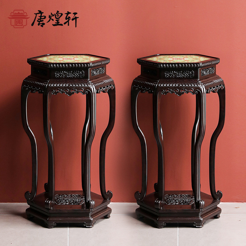 明清の古典的な雲石の花の棚の花のいくつかの香りのいくつかの中国式の実木の置物の盆栽の棚の客間のベランダの着地する物棚
