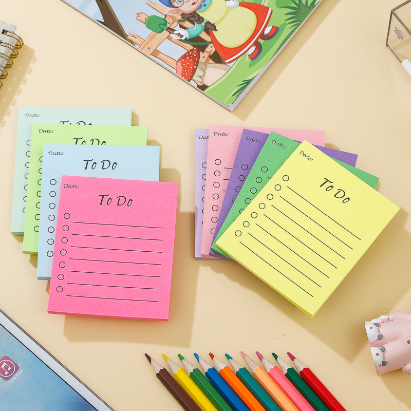 学生向けカラーメモ帳、蛍光メモ帳、個性的な広告、かわいい漫画、繰り返し使えるメモ帳