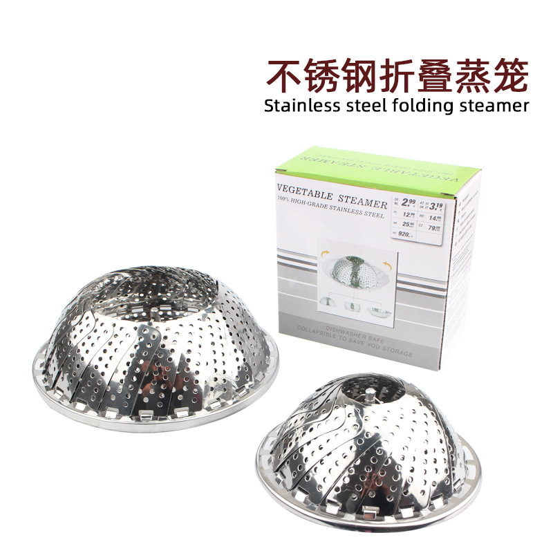 ステンレス折りたたみ伸縮式蒸し器多機能果物皿家庭用饅頭蒸し器キッチン収納蒸し器水たまりかご