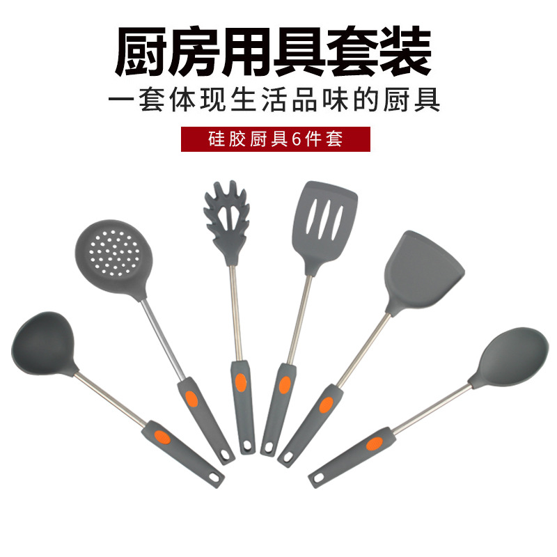 家庭用調理用品シリコンキッチン6点セット調理器具ヨーロッパ式304柄無粘着鍋シャベルスプーンセットクリエイティブ調理器具
