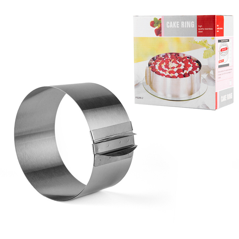 430ステンレスケーキ金型はムースリングの伸縮活動を調節できる6-12インチダブルスケール円形ケーキ金型