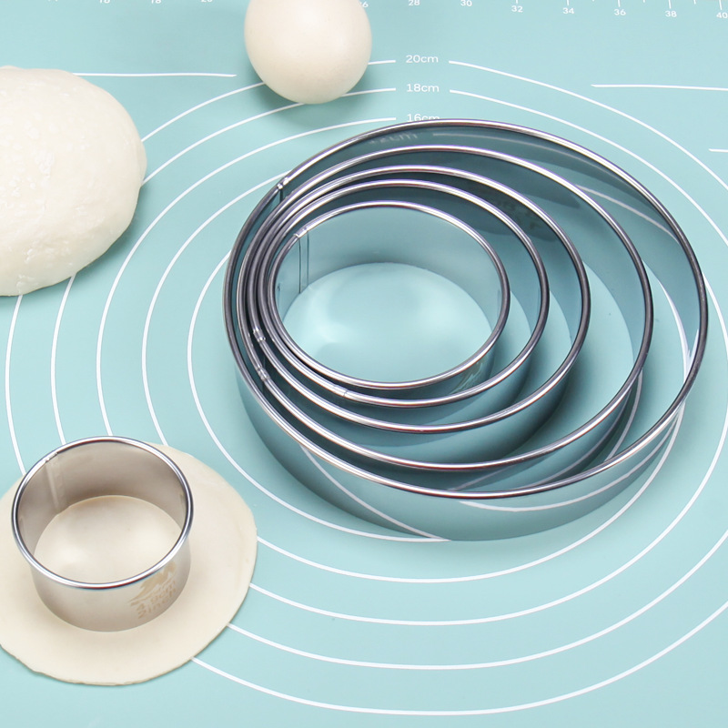 ステンレス鋼の丸みを帯びた円6点セットの円形ムースリングのドーナツは砂糖の型のケーキの型のセットのビスケットの型をひっくり返します。
