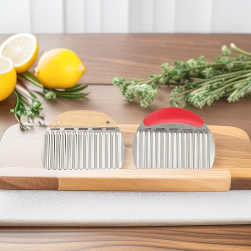 ポテトチップスはステンレスのマッシュポテトを切って波の刀の波紋の切り器の波の切りの刀の波の切りを切ります。