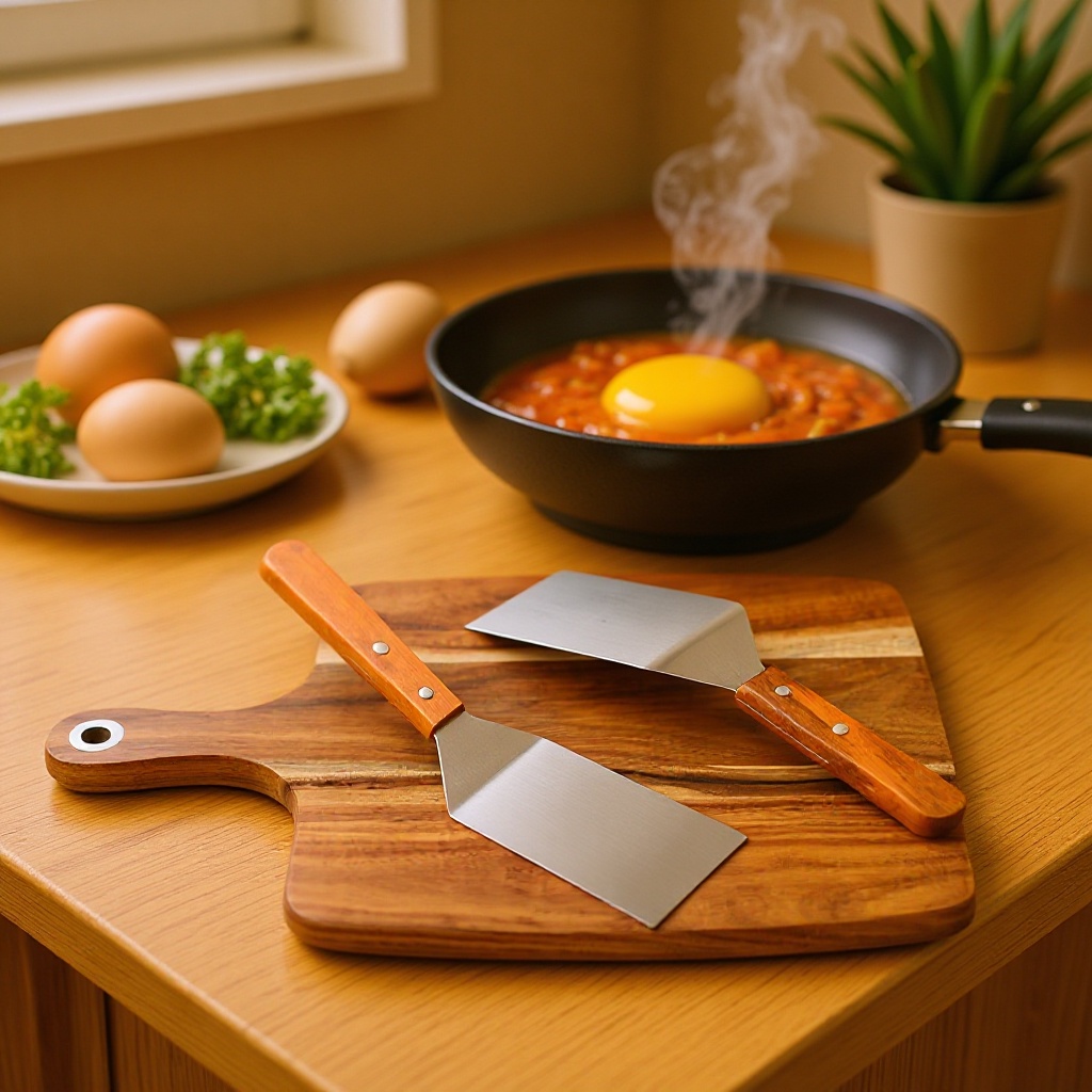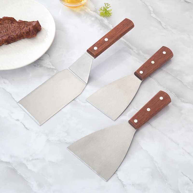 ステンレスフライパンの木の柄の日本料理のシャベルの台所のステーキのシャベルのパンケーキのシャベルの手は餅をつかんで鉄の板を焼きますシャベル