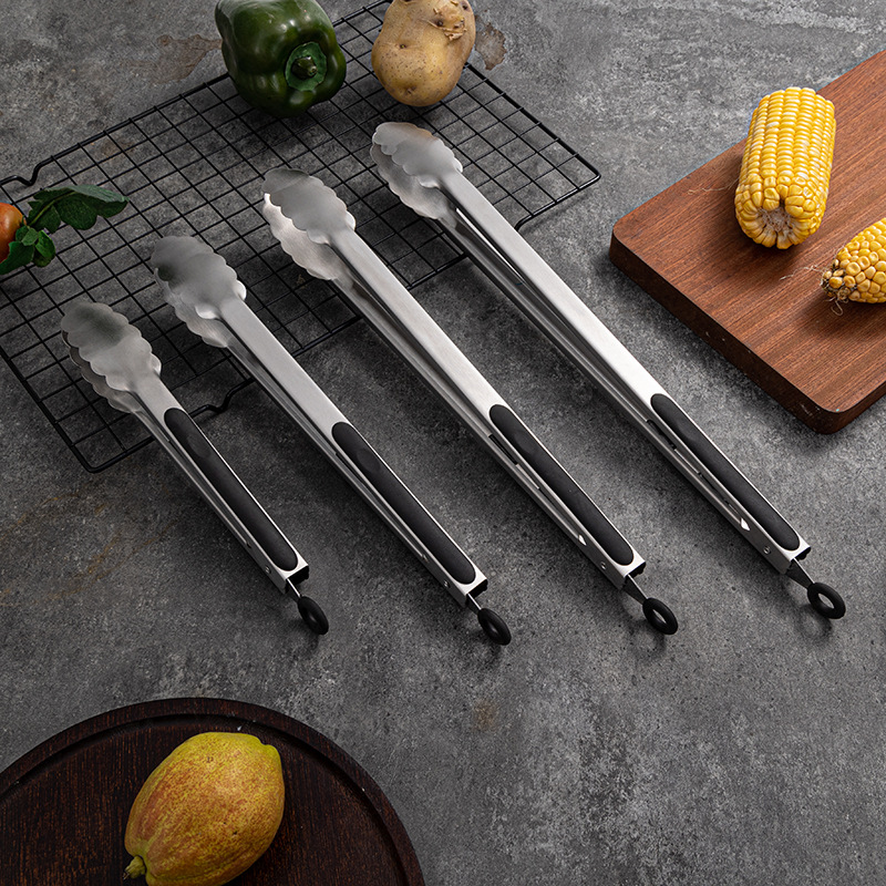ステンレス食品クリップ延長バーベキュークリップ全鋼クリップシリコン滑り止めステーキクリップ焼肉クリップ長い食品クリップ