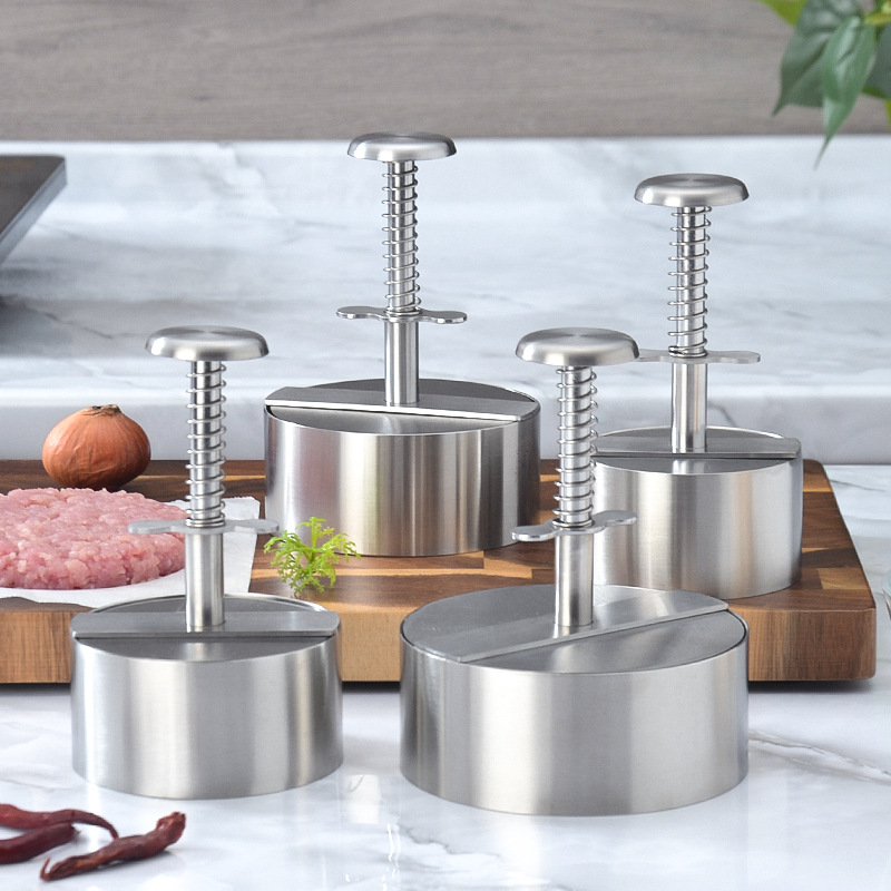 ステンレスハンバーグ押し押し式餅器肉餅押し金型押し餅押しおにぎり神器スプリング手動押し肉器