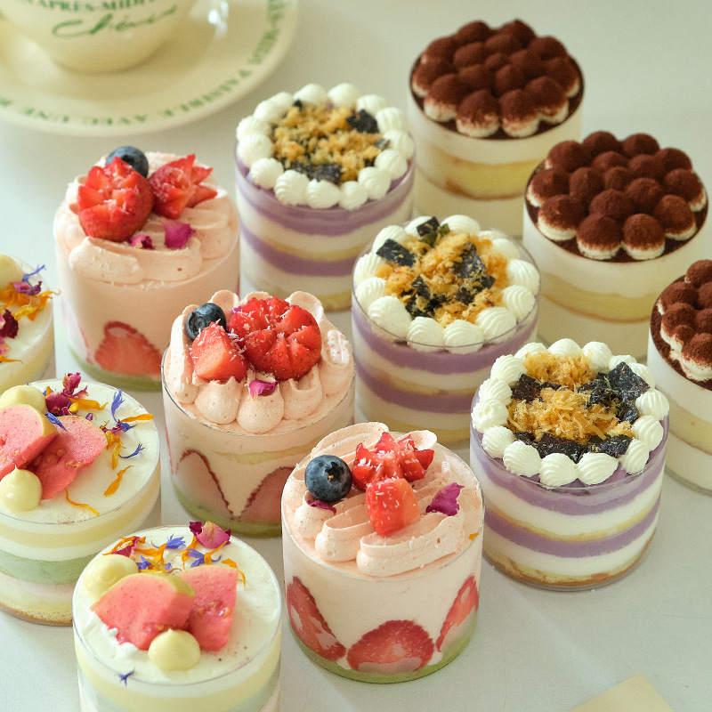 四角い木糠ケーキ箱果物すくい箱サブネット赤千層ムース豆乳包装箱使い捨て透明コップ